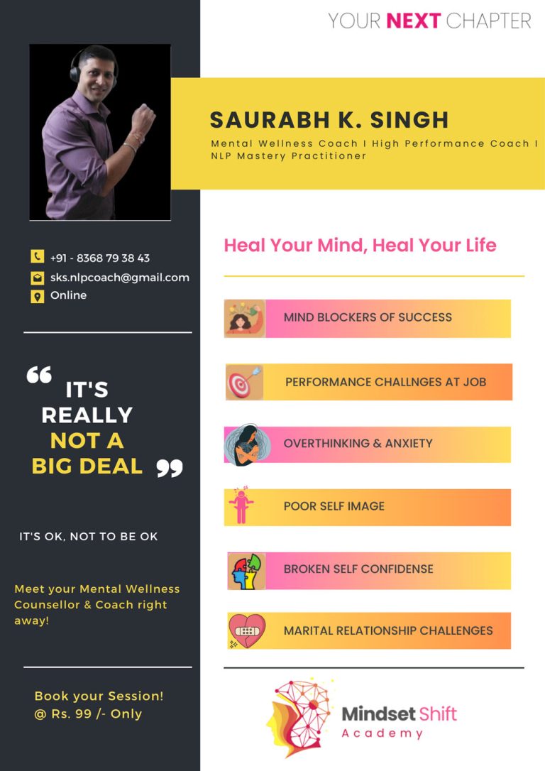 Happiness, Anger to Pleasure, Anxiety to ease, breakup to new start, Poor Self Image